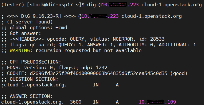 10.xx.xx.223 DNS 서버에 cloud-1.openstack.org 도메인 네임과 IP가 등록되었는지 쿼리하여 확인